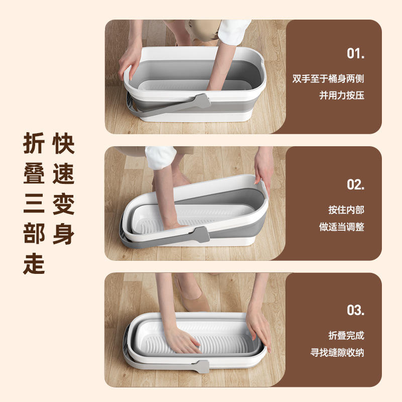 Foldable Rectangular Mop Bucket Large Capacity Flat Mop Basin For Cleaning Floor And Car Use