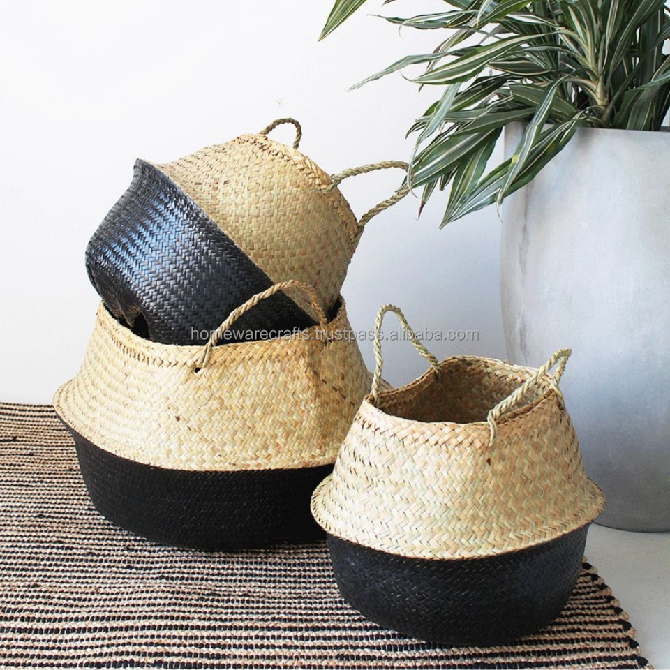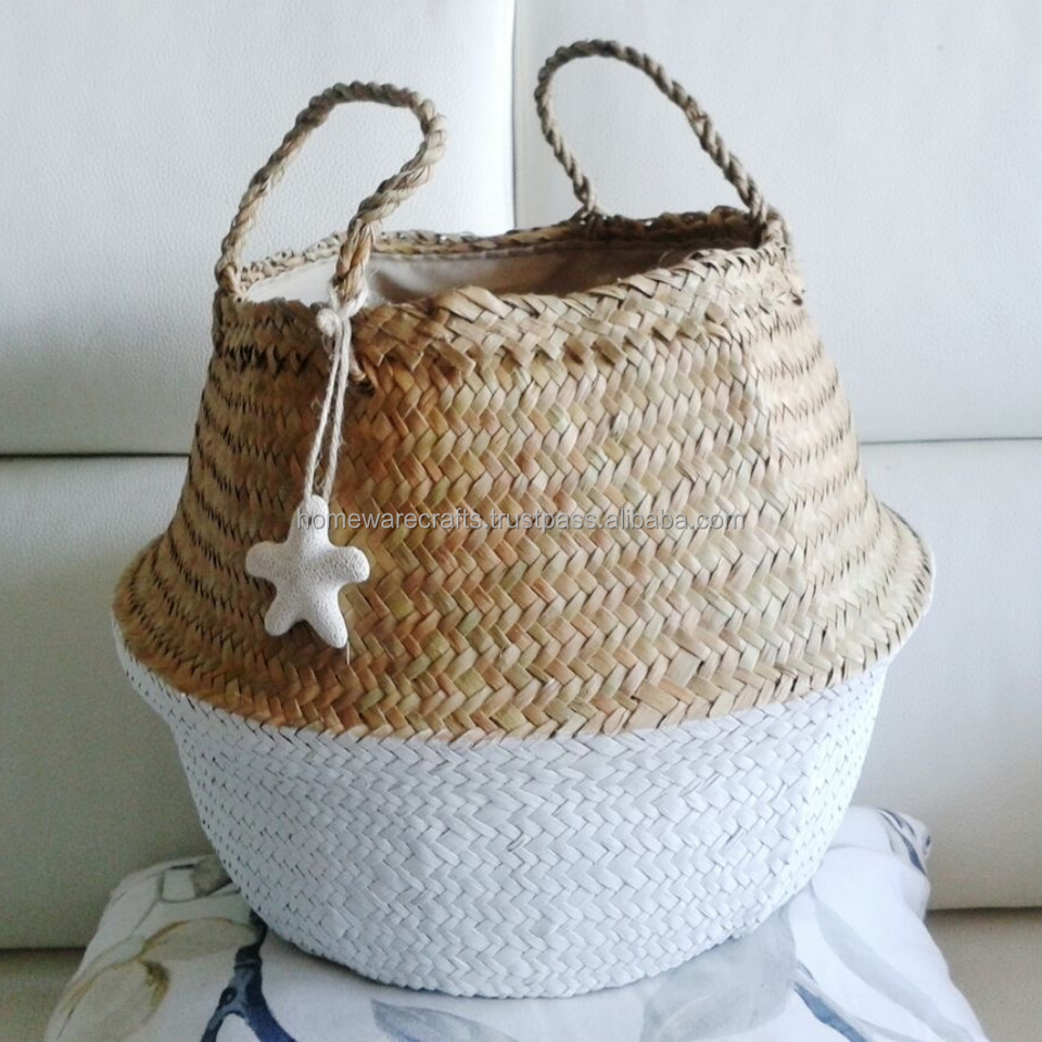 Foldable Seagrass Belly Basket Bulk Orders Wholesale Sustainable Storage Basket for Hotel Resort Home Decor Vietnam