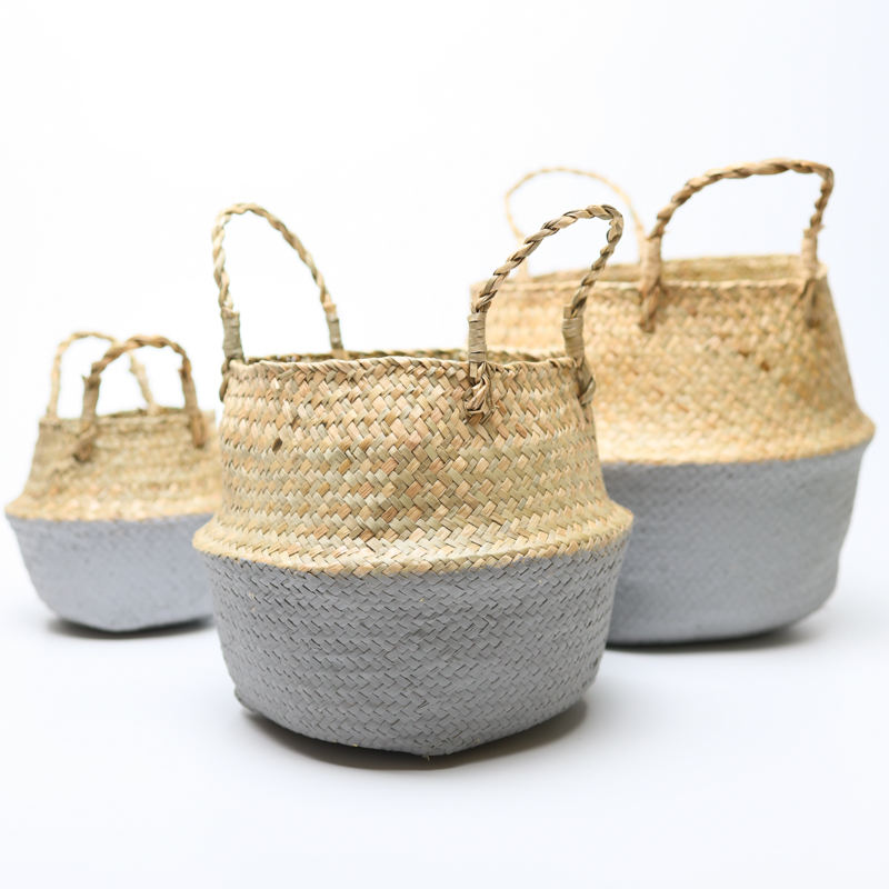 Foldable Seagrass Belly Baskets for Pet Toy Organizer Natural Handbraided Straw Storage Basket Made in Vietnam