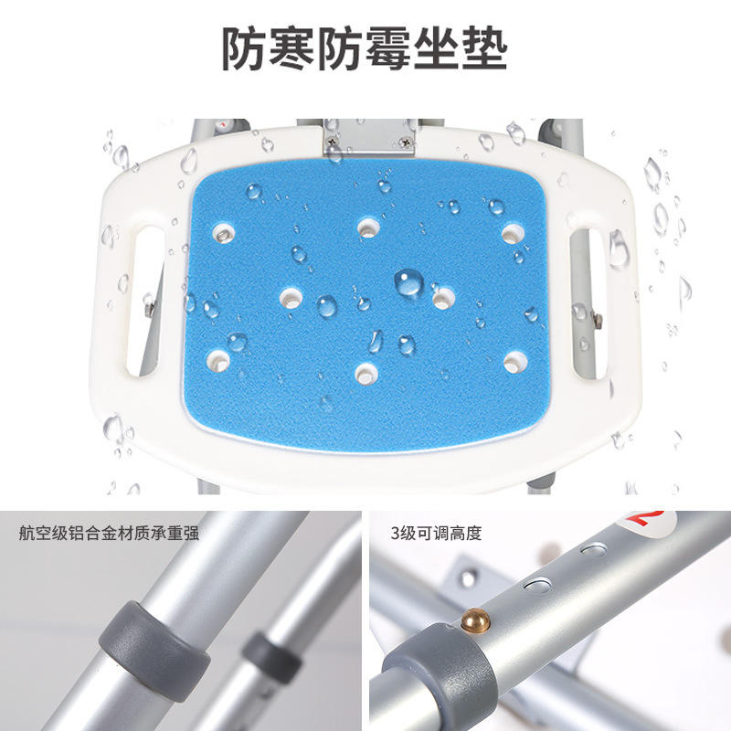 Foldable Shower Stool With Anti Slip Pad Adjustable Height Bathroom Safety Chair For Elderly