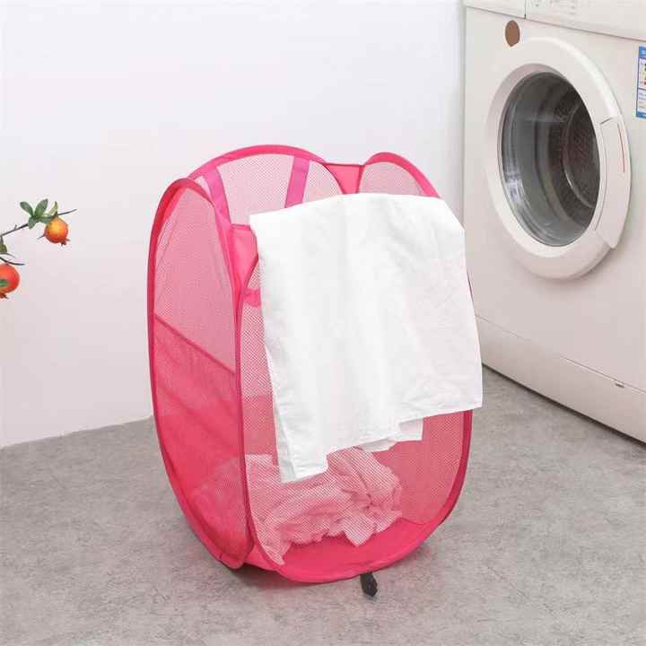 Foldable Smell Proof Mesh Laundry Bag with Multiple Compartments Red Laundry Basket