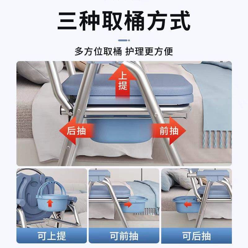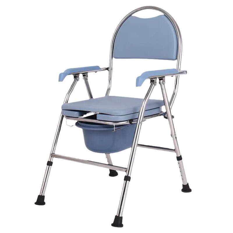 Foldable Stainless Steel Commode Chair With Soft Seat And Adjustable Height For Elderly And Disabled Hospital Use