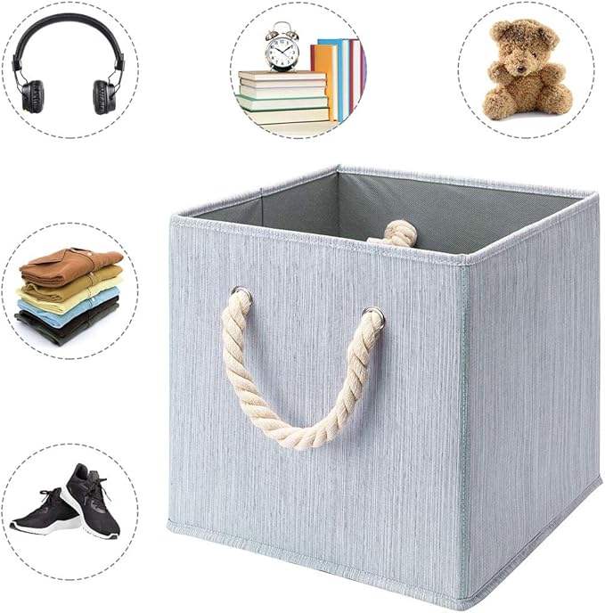 Foldable Storage Cube Bins Fabric Collapsible Resistant Basket Box Organizer with Cotton Rope Handle for Home Office and Nursery