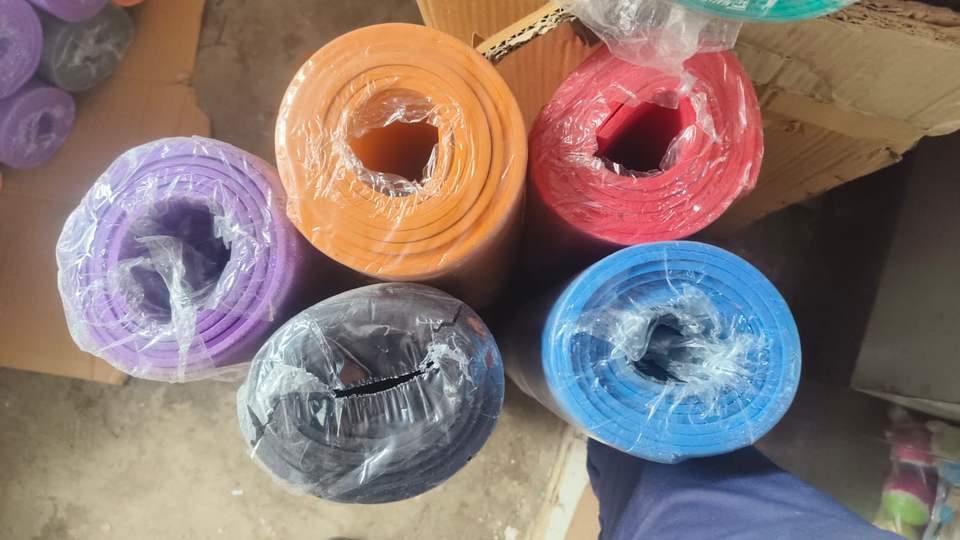 Foldable Rubber Fitness Travel Yoga Mat 4mm/1mm Waterproof with Printed Position Line Eco-Friendly Carrying Strap Mixed Color