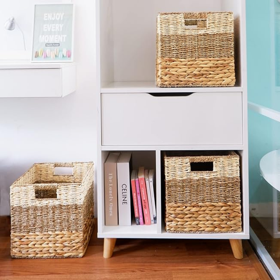 Foldable Hyacinth Water Woven Storage Cube Organizer Collapsible Laundry Books & Gifts Basket Made of Rope for Home Kitchen Use