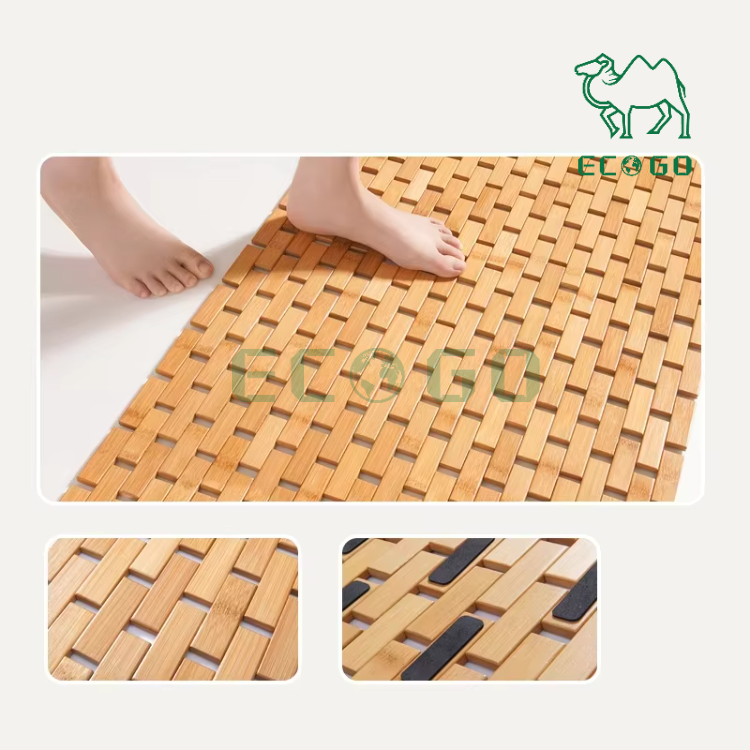 Foldable Waterproof Wood Bamboo Sauna Bathroom Shower Mat With Non-slip Silicone