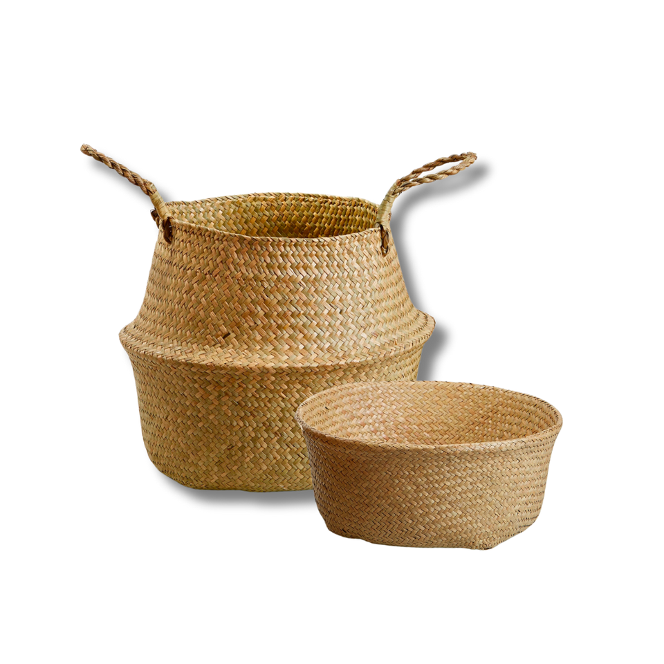 Foldable and Sustainable SEAGRASS BELLY BASKETS Perfect Straw Basket for Laundry Blanket Toy Storage with Bohemian Style