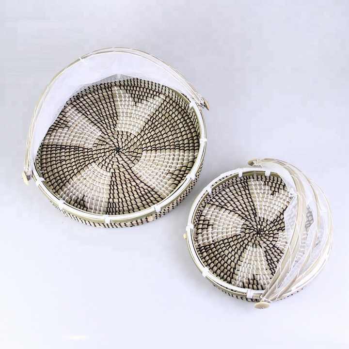 Foldable seagrass mesh food cover wholesale circular sea grass foods tent with nets covers