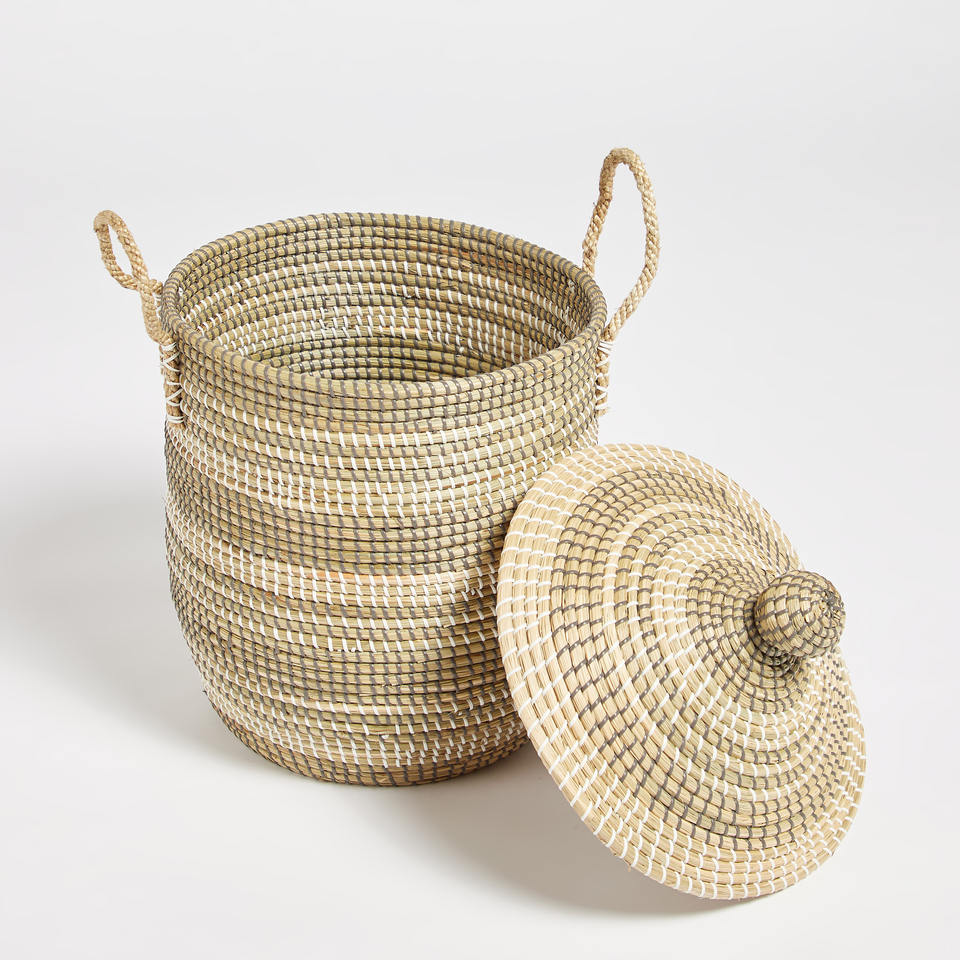Foldable seagrass straw baskets wholesale cost raffia bins sea grass bin basket resort hotel room