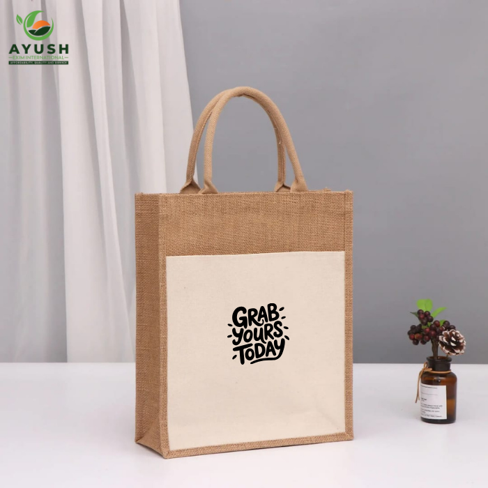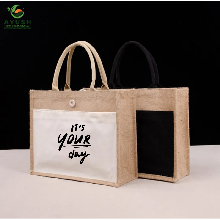Foldable shopping bag with zipper made of jute & cotton for grocery shops & malls