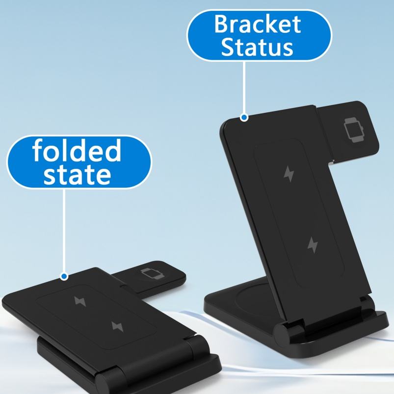 Folding 3 in 1 Fast Charging 15W Desktop Earbuds Phone Wireless Charger Station