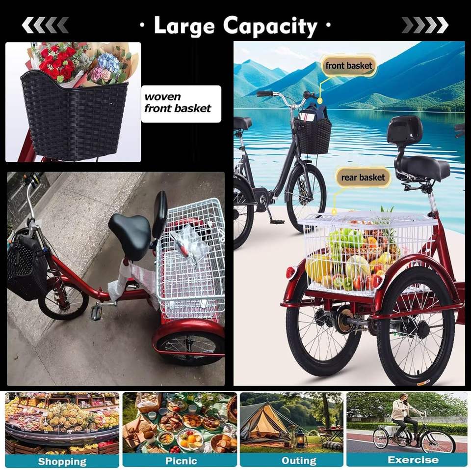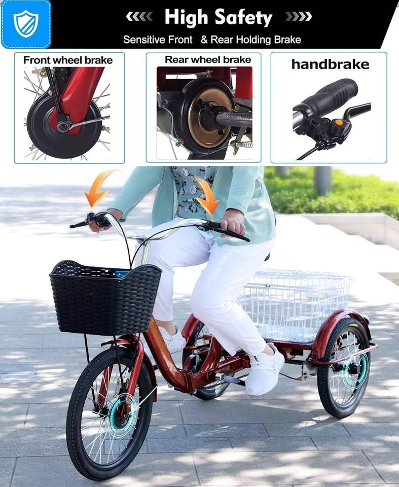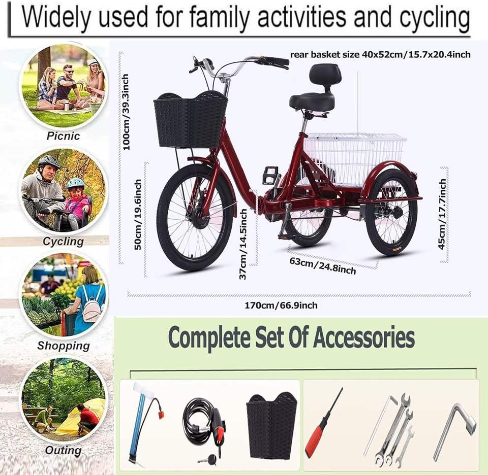 Folding Adult Tricycle Cargo Trike 3-Wheel Bike Shopping Basket Adjustable Seat Post Perfect Gears Perfect Braking System