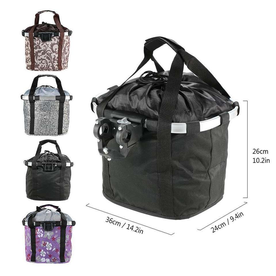 Folding Bicycle Basket Aluminum Frame Oxford Cloth Handlebar Mount 5kg Capacity Foldable Front Bike Bag