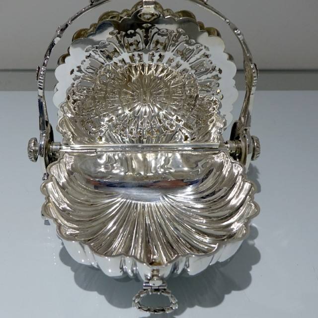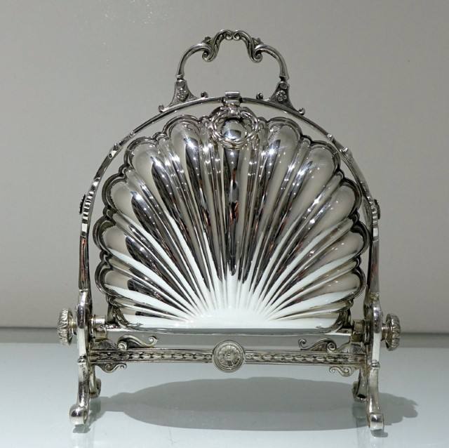 Folding Biscuit Box Shell Shape Victorian English Biscuit Antique Silver Plated Warmer Barrel for Home Decor and Hotel