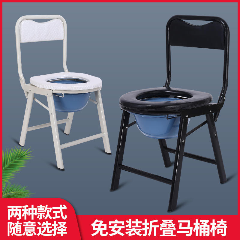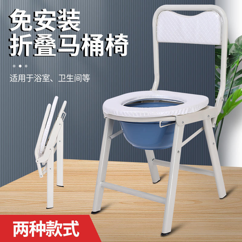 Folding Commode Chair With Backrest Round Blue Basin For Elderly And Pregnant Women Home Use