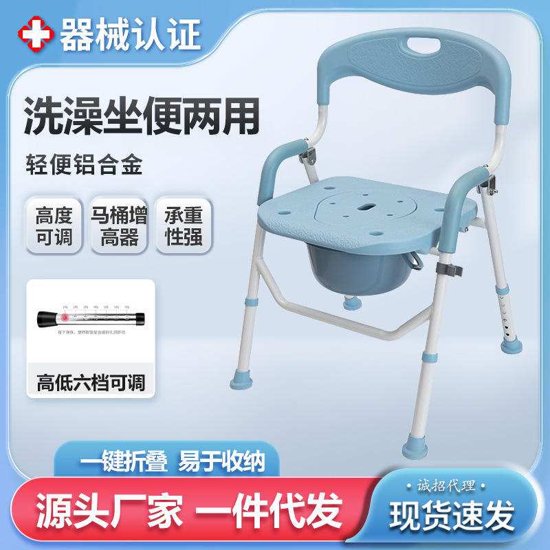 Folding Commode Chair With Bucket For Elderly And Pregnant Women Bathroom Use Adjustable Height Shower Seat