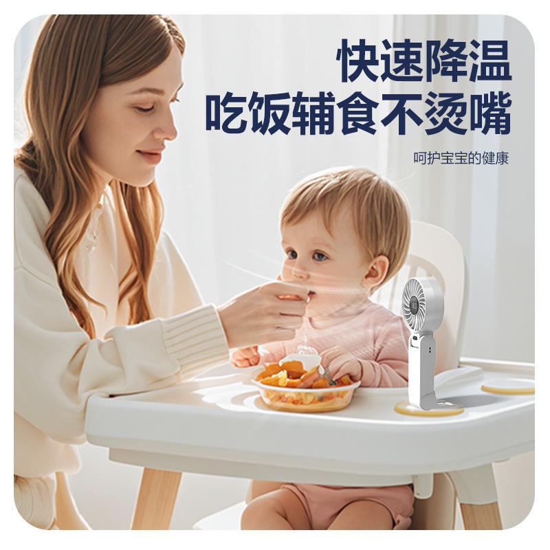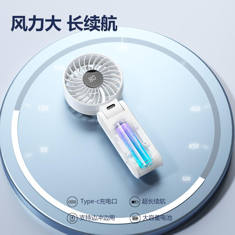 Folding Digital Display Handheld Fan USB Rechargeable Portable Desk Fan High Airflow Y26 White Blue