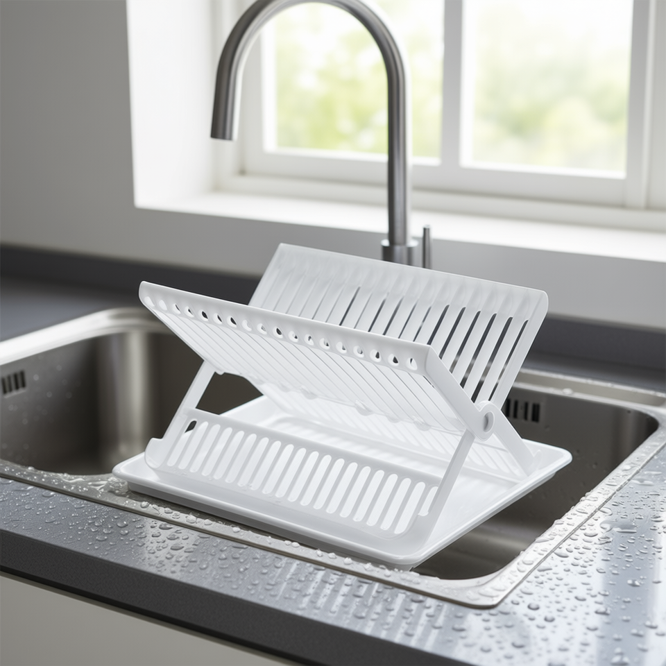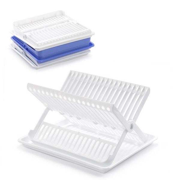 Folding Dish Rack With Tray For Kitchen Sink Dishware Drying Storage White Blue Set