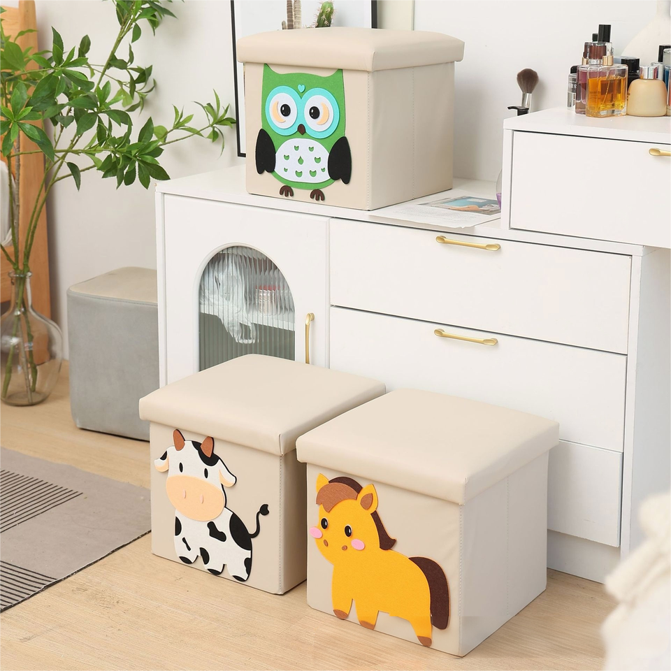 Folding Foot Stool with Thicker Foam Padded Seat Small Leather Storage Ottoman Bench Foot Rest for Living Room