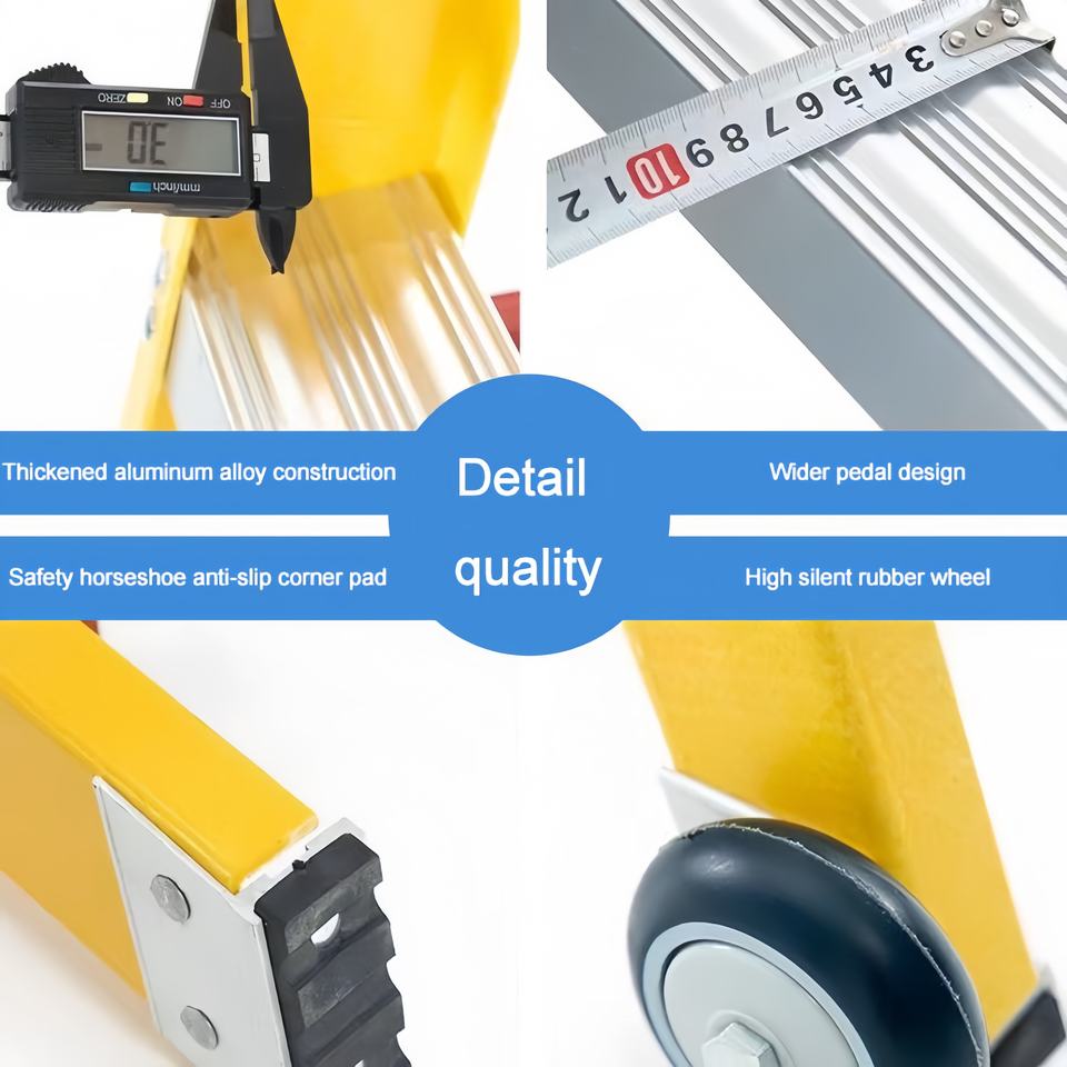 FCJ Industrial Style Metal Lightweight Foldable Ladder Home Use En131 Certified Working Platform and Tool Storage Stools