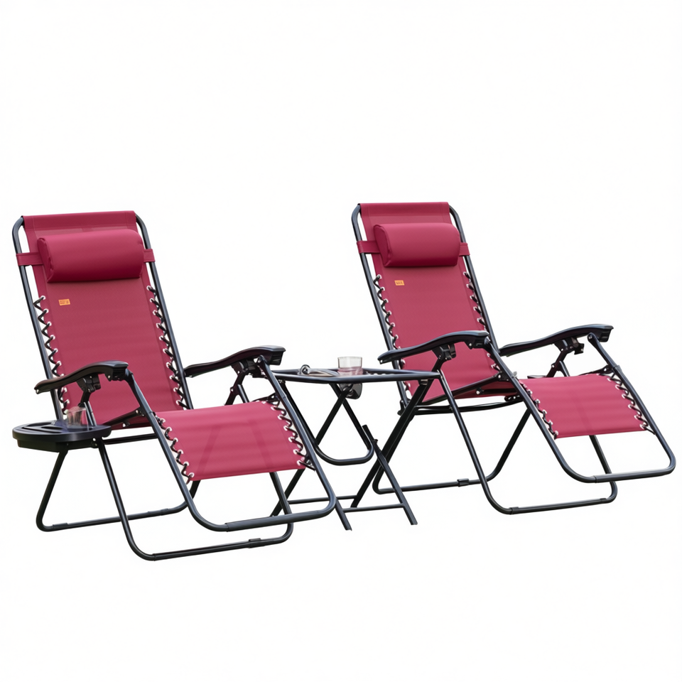 Folding Lounge Beach Chair Polyester Steel Frame Tilt Adjustable Outdoor Furniture
