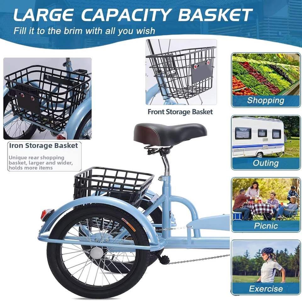 Folding Pedal Assist Tricycle for Men/Women Cargo & Cruiser with Best Frame Material Perfect Gears Rear Basket Dual Brake System
