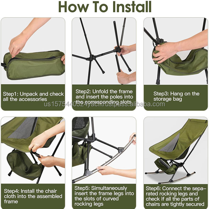 Folding Rocking Camping Chair High Back Chairs for Outdoor Patio Garden Picnic Beach Leisure Recliner Fishing Rocking Chairs