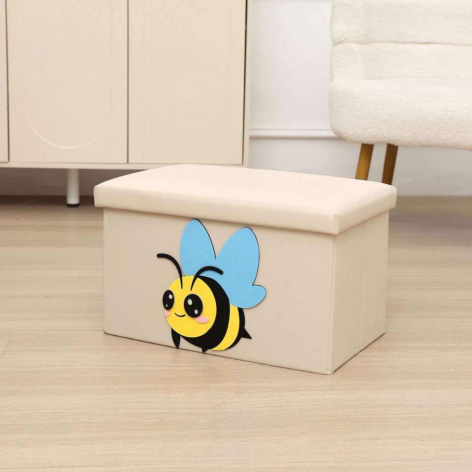 Folding Storage Ottoman 48*30*30cm Leather Rectangle Foot Rest Bench Seat Organizer Toy Chest with Handles Lid