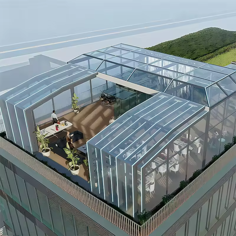 Folding Sunroom with Powder Coated Frame Anti-Slip Flooring Safety Tempered Glass for Family Outdoor Lounge