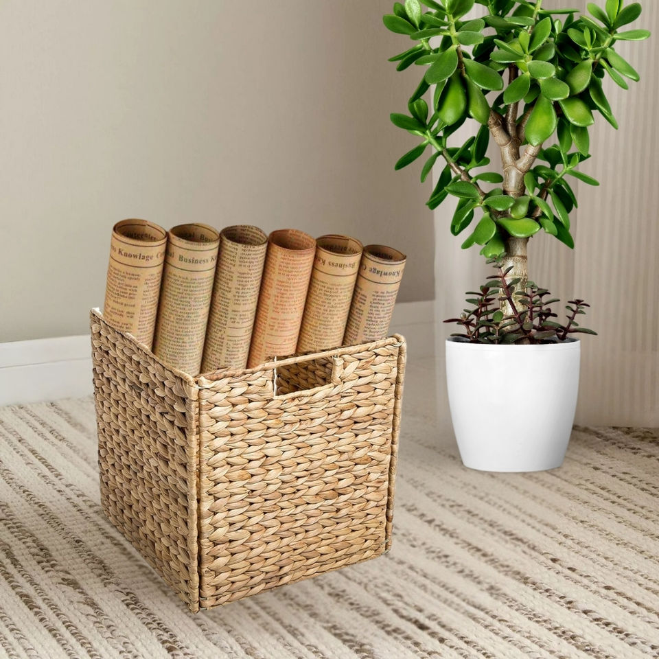 Folding Water Hyacinth Storage Basket Customizable Size Square Shape Durable Laundry Hamper Eco-Friendly Handwoven Design