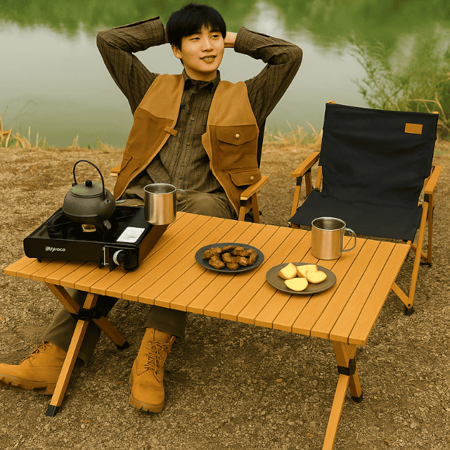 Folds Flat for Storage Folding Camping Table with Chairs Stainless Steel Modern Outdoor Furniture for Kitchen & Exterior Use