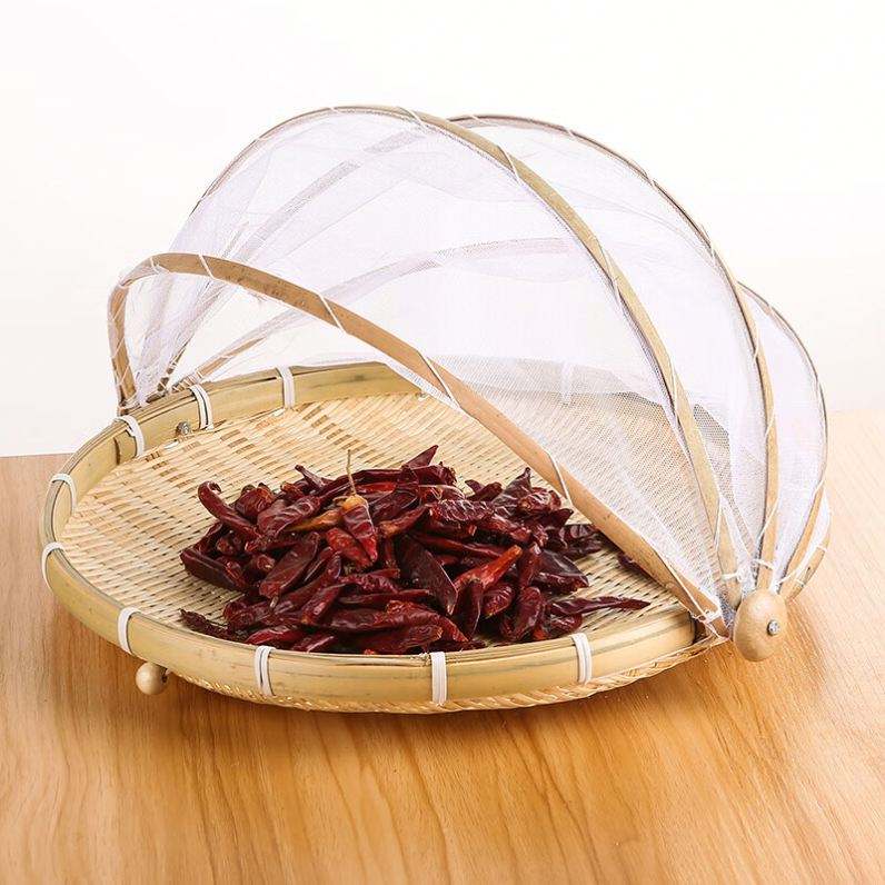 Food Cover with Tent Fruit Bread Baskets Summer Storage Outdoor Picnic Mesh Cover Handmade Bamboo Bamboo Kitchen Natural Single