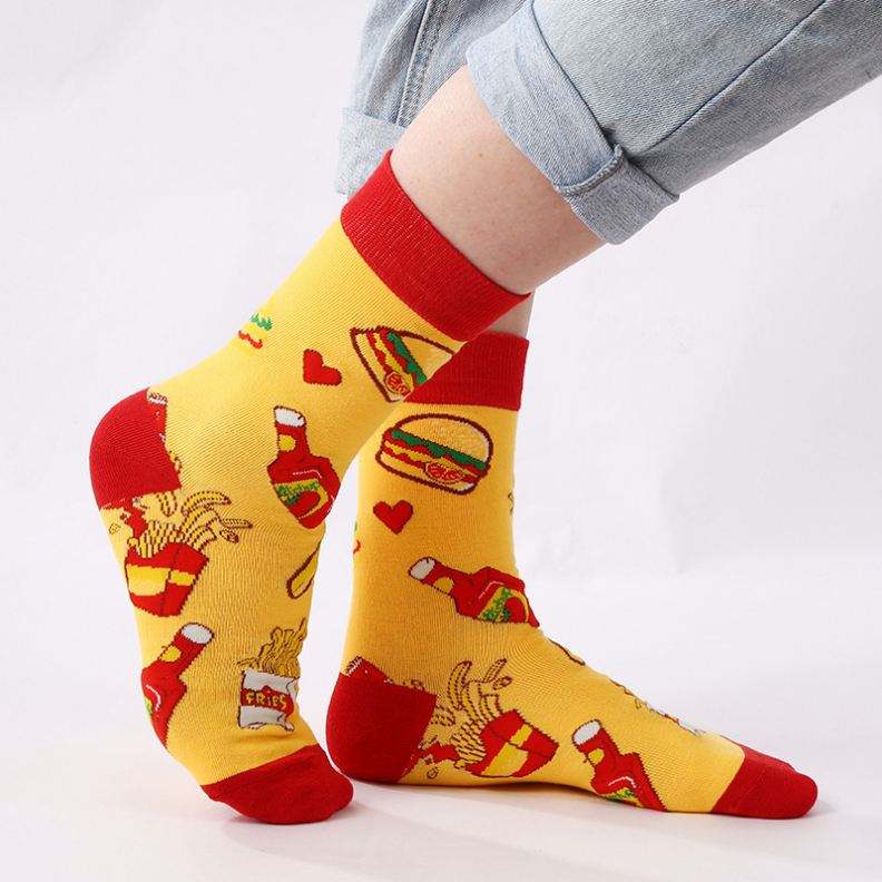 Food Funny Anti-Bacterial Anti-Slip Digital Printed Cotton Jacquard Disposable Spring Unisex Socks