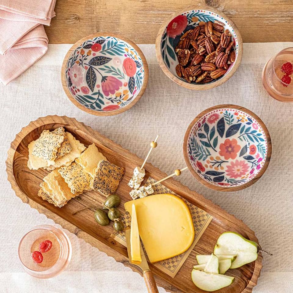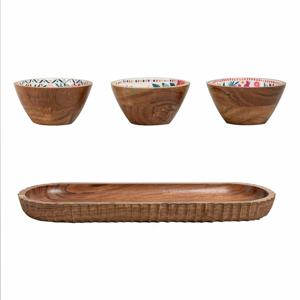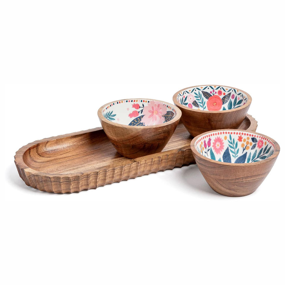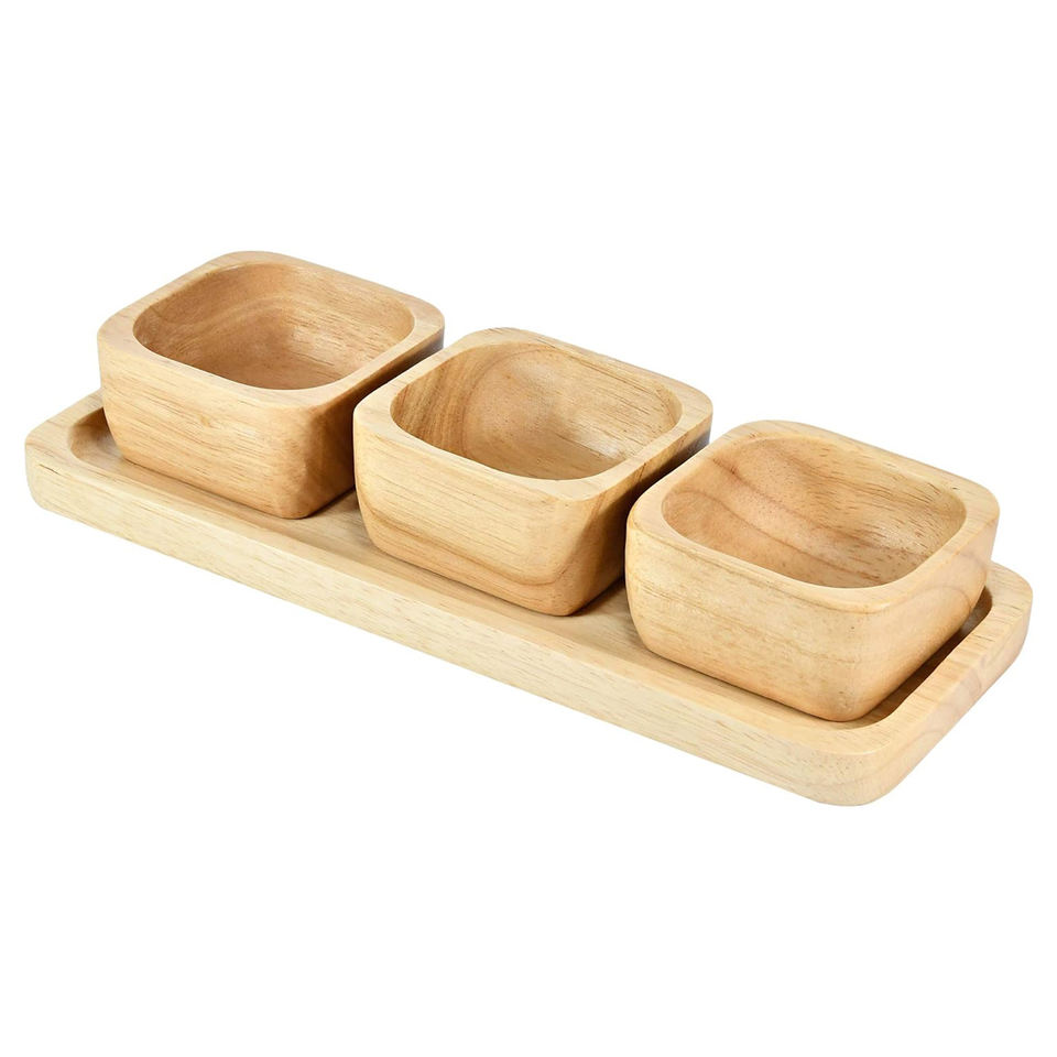 Product Name:Wooden Serving Platter with 3 Bowl Set