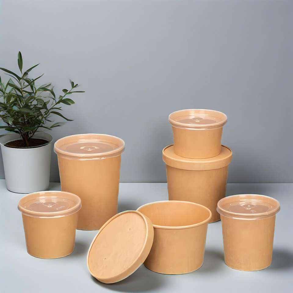 Food Grade Cheap Disposable Container Eco Friendly Bucket Take Out Kraft Paper Soup Bowl With Lid