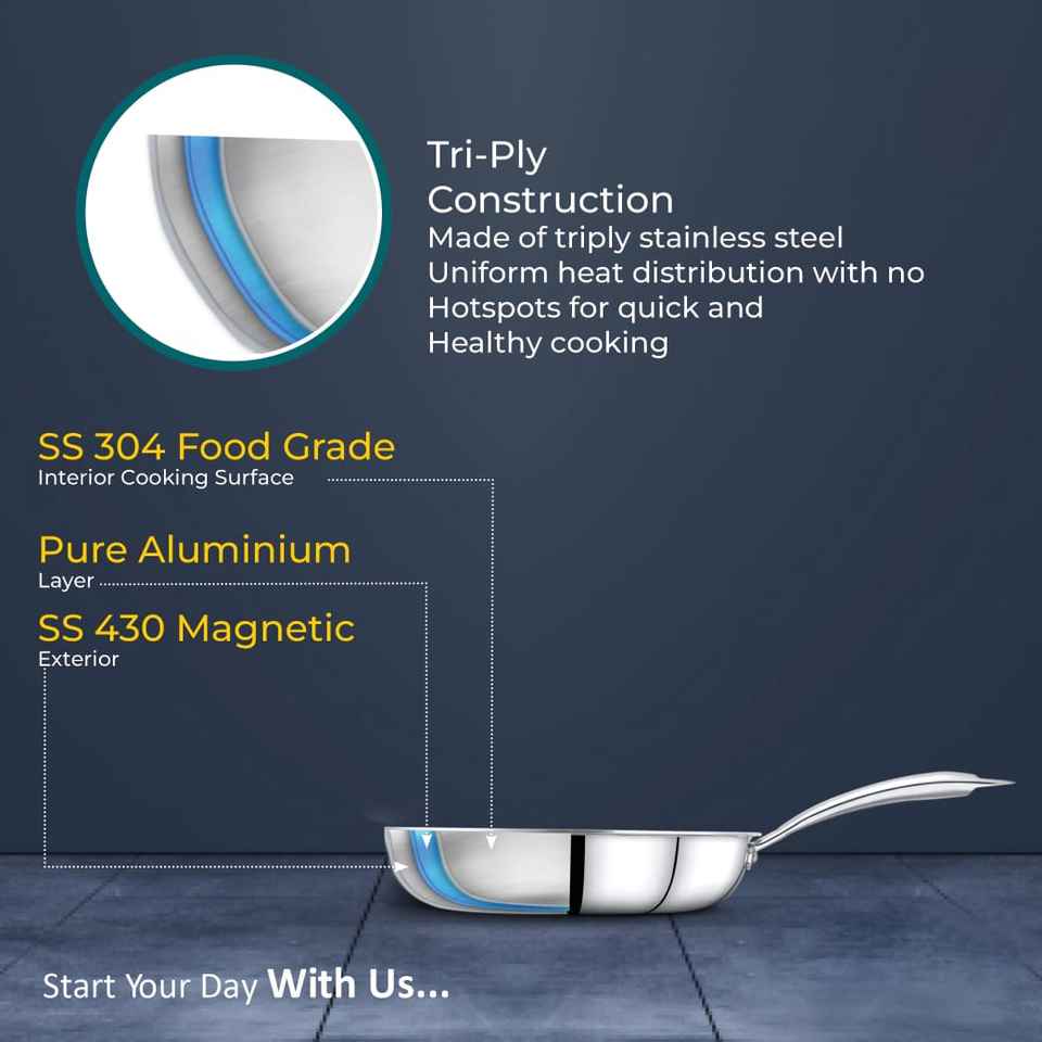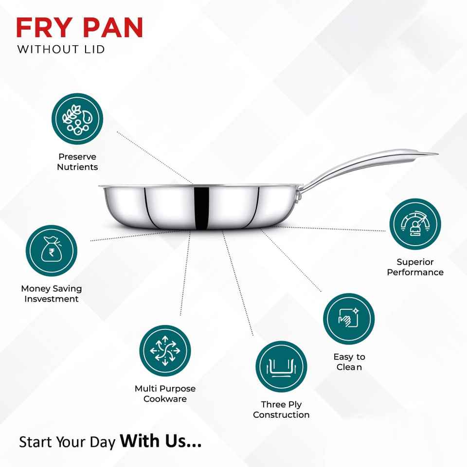 Food Grade Cookware Stainless Steel Riveted Handle Fry Pans without Lid Durable Design Easy Clean Exotic Silver Shining