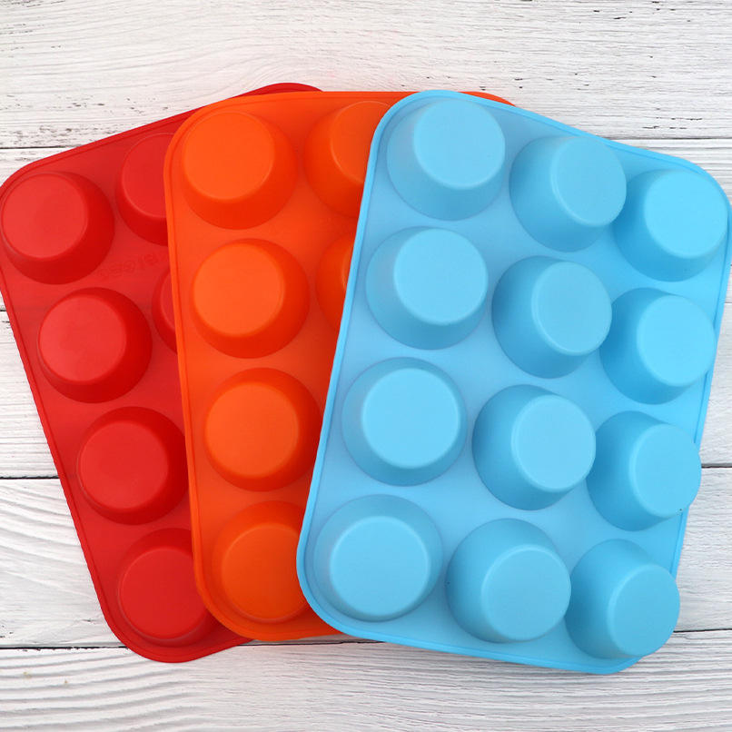 Food Grade DIY 12 Holes Round Reusable Muffin Cupcake Silicone CupCake Mold Silicone Muffin Cupcake Mold