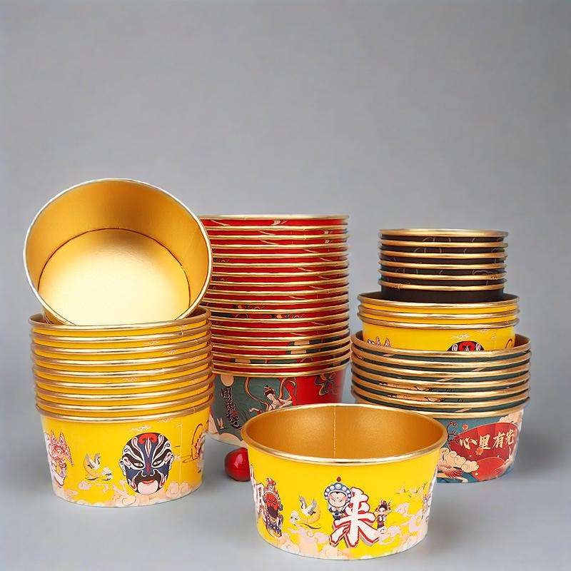 Food Grade Disposable Custom Logo Gold Foil Kraft Paper Soup Take Away Food Packaging Salad Bowl With Lids