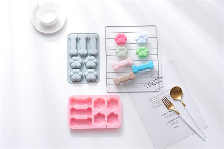 Food Grade Dog Treat Biscuits Chocolate Molds Puppy Dog Paw and Bone Silicone Ice Cream Jelly Pudding Soap Cake Mold Baking Tool