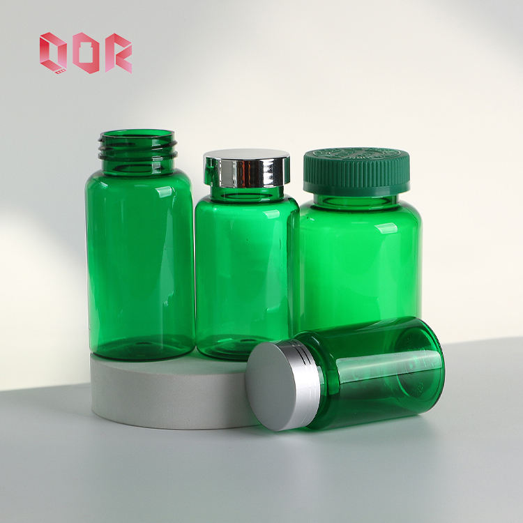 Food Grade Green PET 150ml Capsules Tablet Supplement Healthcare Plastic Bottle with Customize Colour, CRC Cap Metallic Cap
