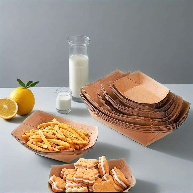 Food Grade Kraft Paper Boat Biodegradable Paper Food Packaging Tray Disposable Boat Tray for Food Packaging