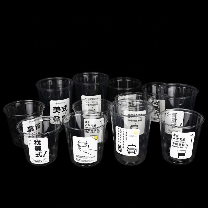 Food Grade PET Customized Single Wall Reusable UV Printing Drink Coffee Milk Tea Plastic Cup with Round Stickers 90mm