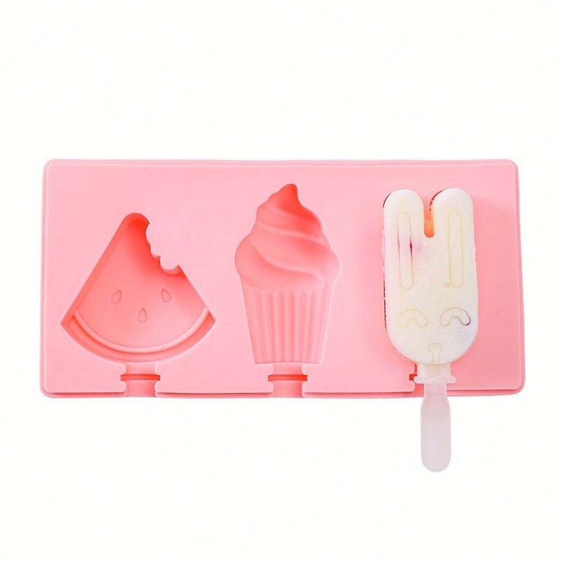 Food Grade Silicone Ice Cube Mold Lovely Cartoon Popsicle Maker with Stick Ice Cream Tools