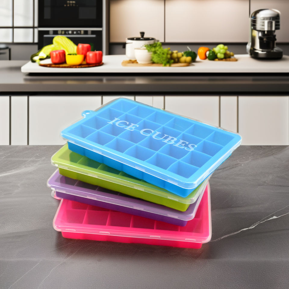 Food Grade Silicone Ice Cube Tray Round Circle Mold for Freezer with Lids for Kitchen and Office Use