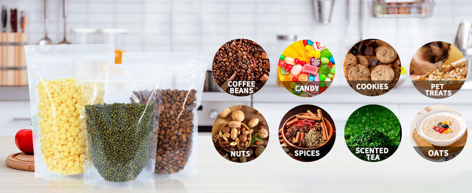 Food Grade Transparent Resealable Snacks Candy Spices Herbs Pet Food Packaging Vertical Zipper Lock Storage Bag Plastic Bags