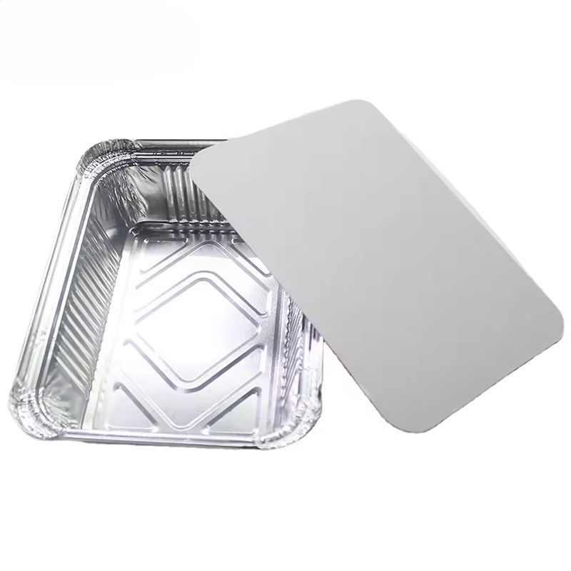 Food Packaging Disposable Aluminum Foil Food Container Takeaway Trays Rectangular Foil Plate Paper Lid 200ml Food Grade