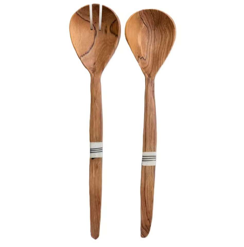 Food Safe Eco Friendly Acacia Wood Salad Tools Server Set Custom Color Microwave Oven Safe Custom Logo for Home Restaurant Use