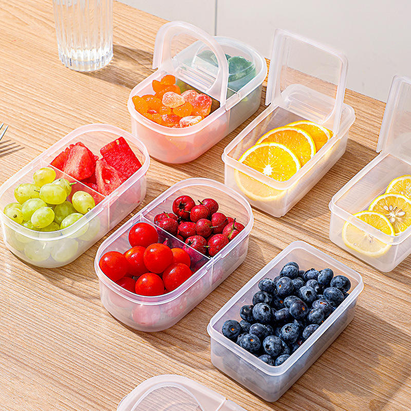 Food Storage Boxes Rectangle Plastic Lid With Compartment For Fridge Organizing Fruit Vegetables Camping Use