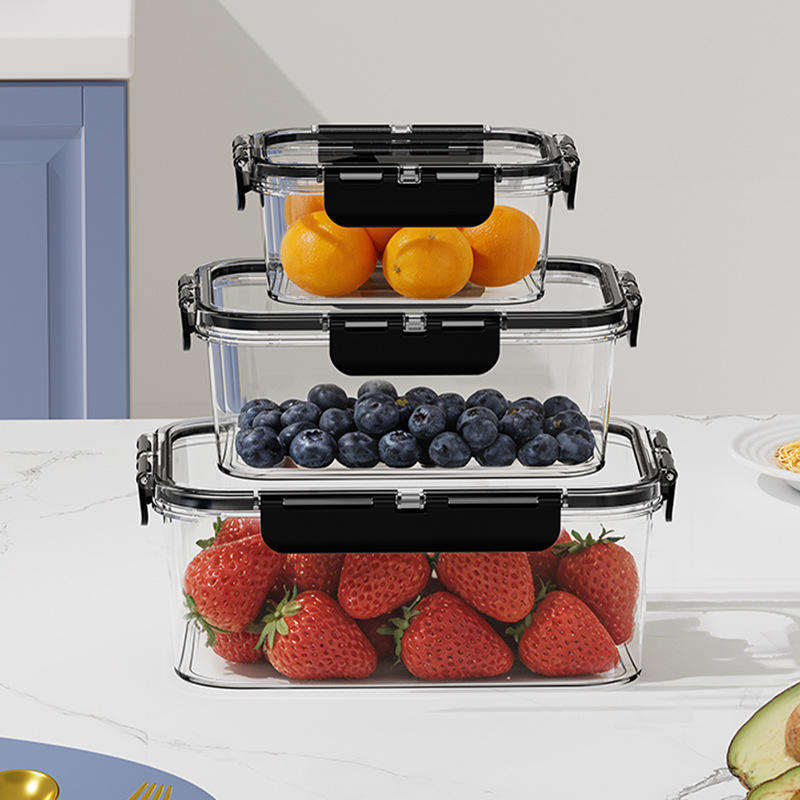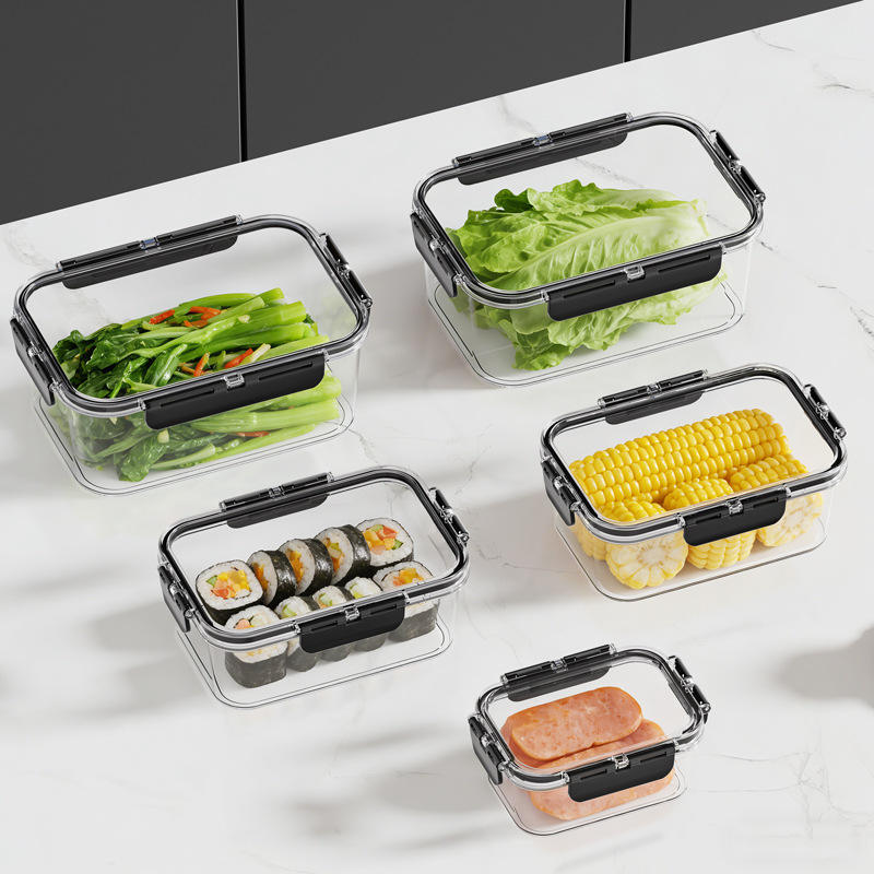 Food Storage Containers Rectangle Airtight Stackable Buckle Lid For Refrigerator Use