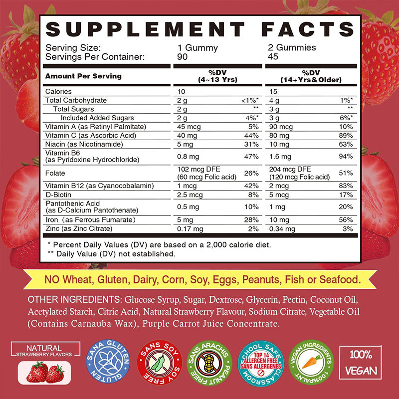 Food Supplements Iron Gummies Support Red Blood Cell Formation Supplement Gummies Multivitamin Iron Energy Gummies